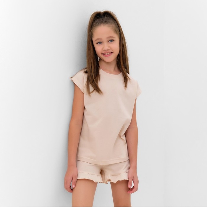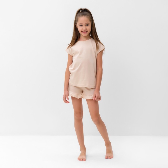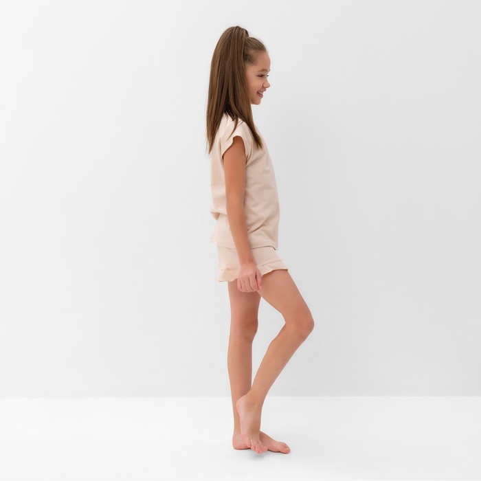 Пижама для девочки (футболка и шорты) MINAKU, цвет бежевый, рост 134 см