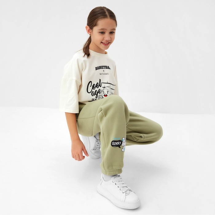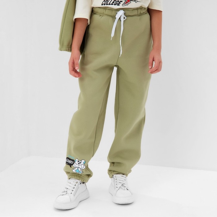 Брюки детские с начесом MINAKU: CRUSH, цвет оливковый, рост 128 см