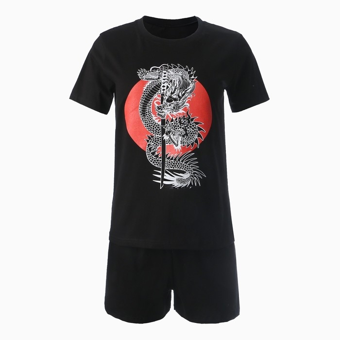 Комплект женский домашний (футболка,шорты), цвет чёрный/дракон, размер 44