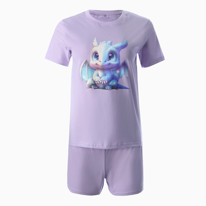 Комплект женский домашний (футболка,шорты), цвет сиреневый/дракон, размер 44