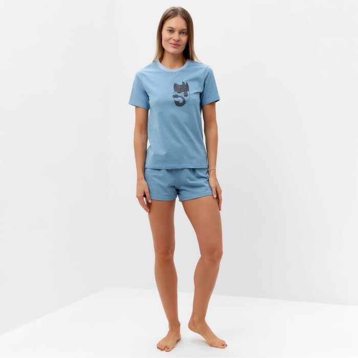 Комплект женский домашний (футболка,шорты), цвет голубой, размер 46