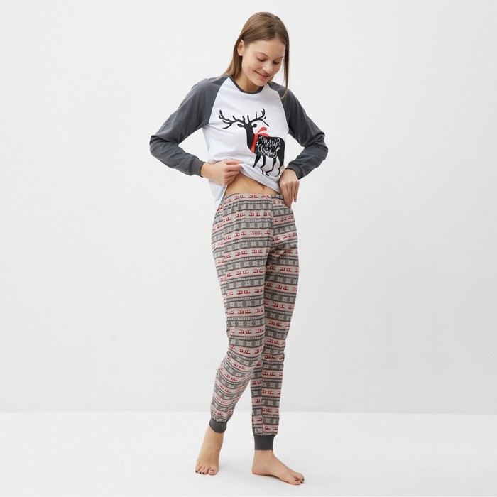 Комплект домашний женский (лонгслив, брюки), цвет серый, размер 44