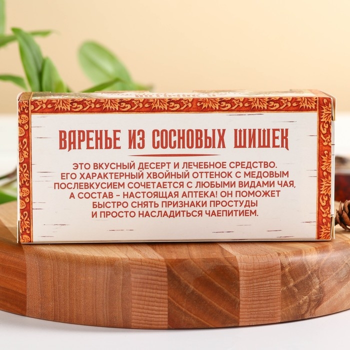 Состав: сосновая шишка, патока, сахар, концентрированный сок лимона.