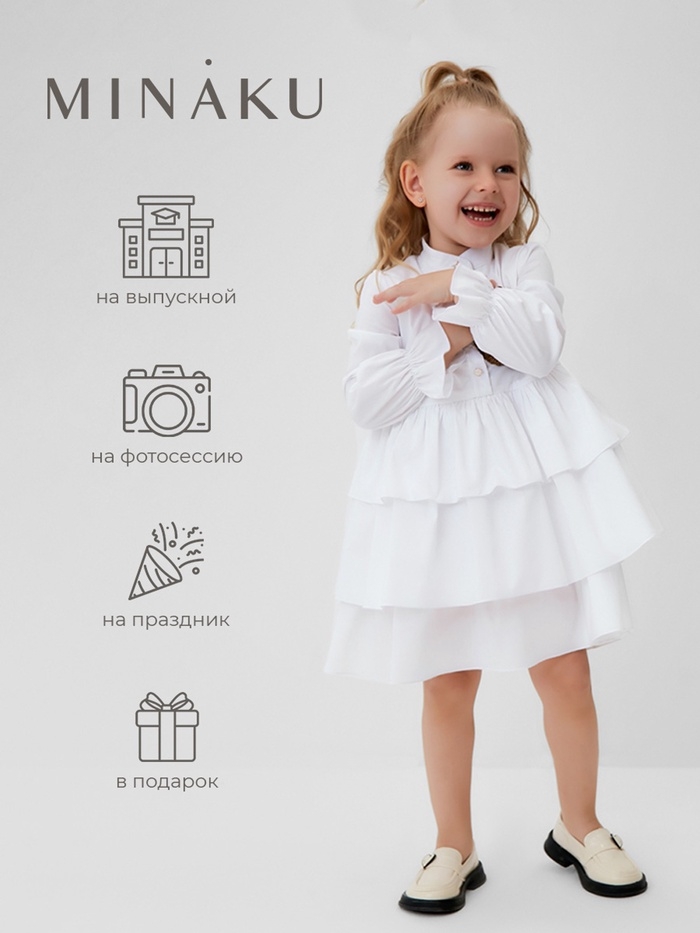Платье для девочки MINAKU цвет белый, рост 122 см
