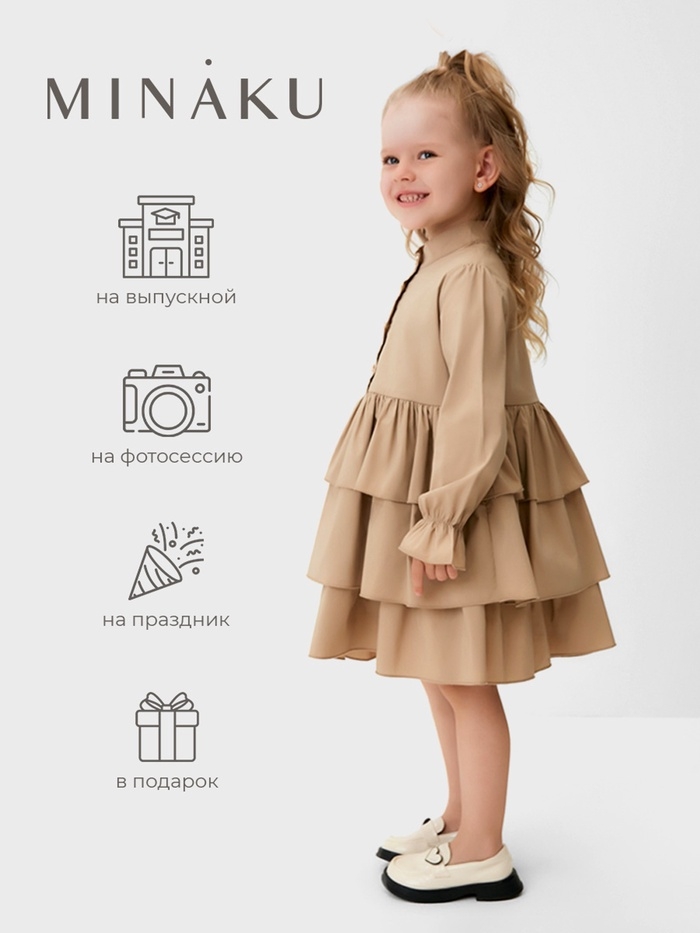 Платье для девочки MINAKU цвет бежевый, рост 134 см