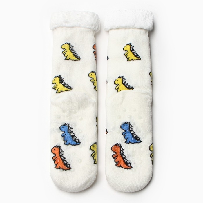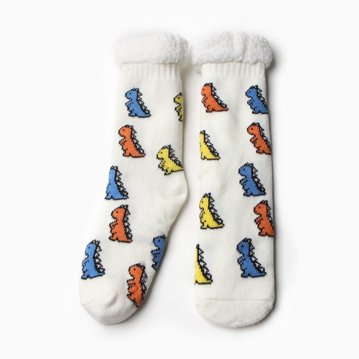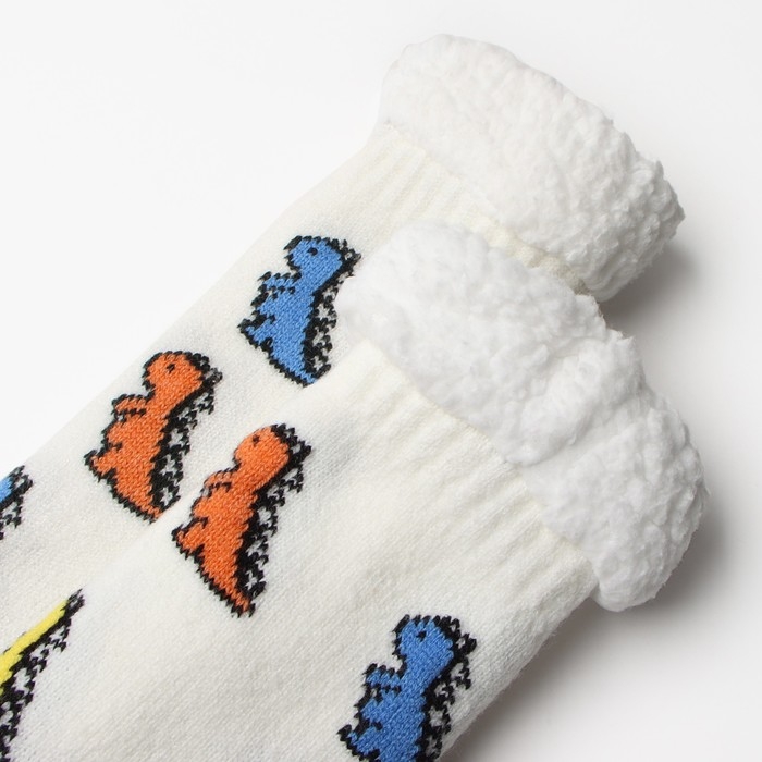 Носки женские с мехом, цвет белый/динозавр, размер 36-40