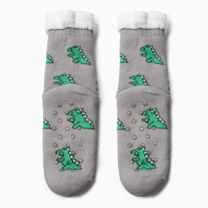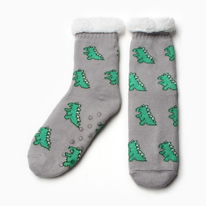 Носки женские с мехом, цвет серый/динозавр, размер 36-40