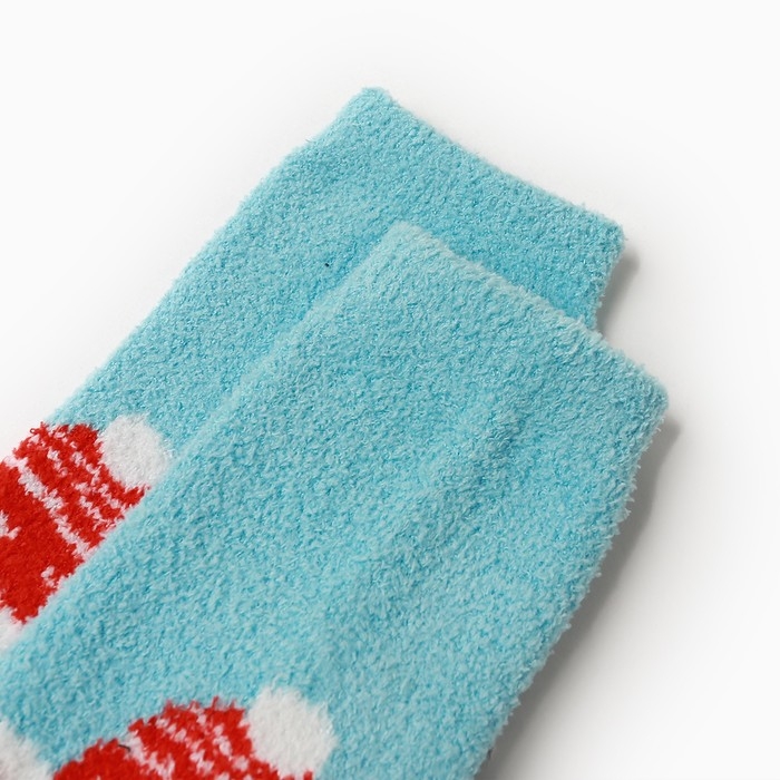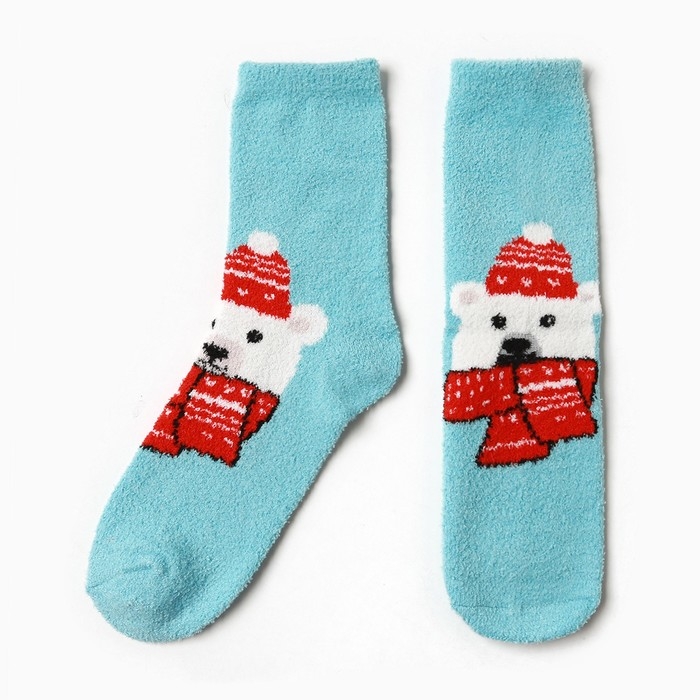 Носки женские новогодние махровые "Медведь в шарфике", цвет голубой, размер 36-40