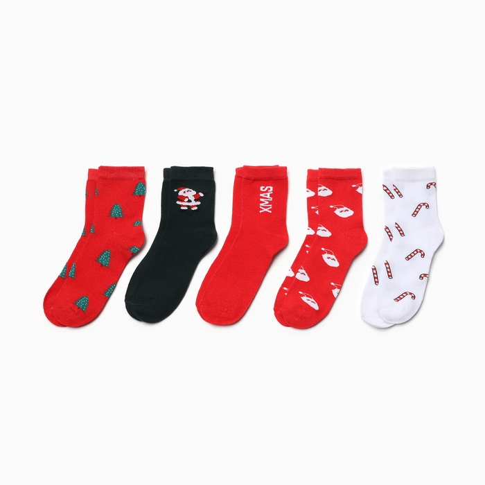 Набор новогодний женских носков KAFTAN "Merry XMAS" размер 36-39 (23-25 см), 5 пар