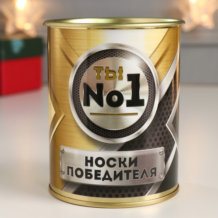 Подарочные носки в банке «Победителя», (внутри носки мужские, цвет черный)