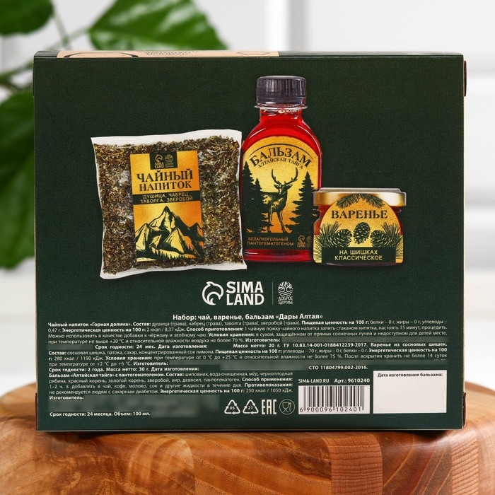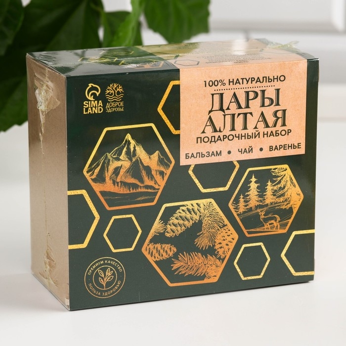 Подарочный набор «С новым годом:Секреты Алтая»: сбор трав 20 г., варенье из сосновых шишек 20 г., безалкогольный бальзам 100 мл.