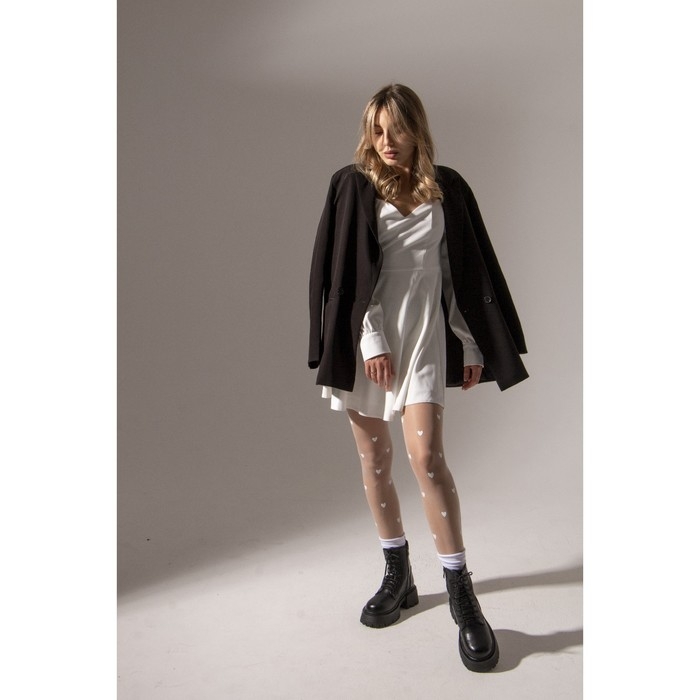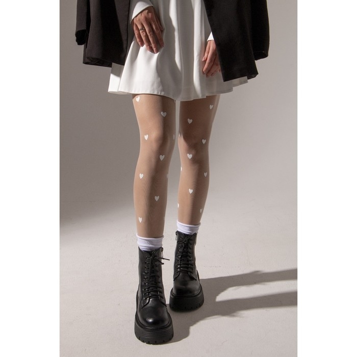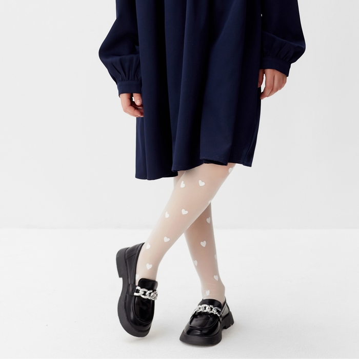 Колготки подростковые "Сердечки", цвет белый, рост 158-164 см