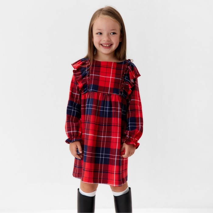 Платье детское с рюшами KAFTAN "Клетка" размер 34 (122-128 см)