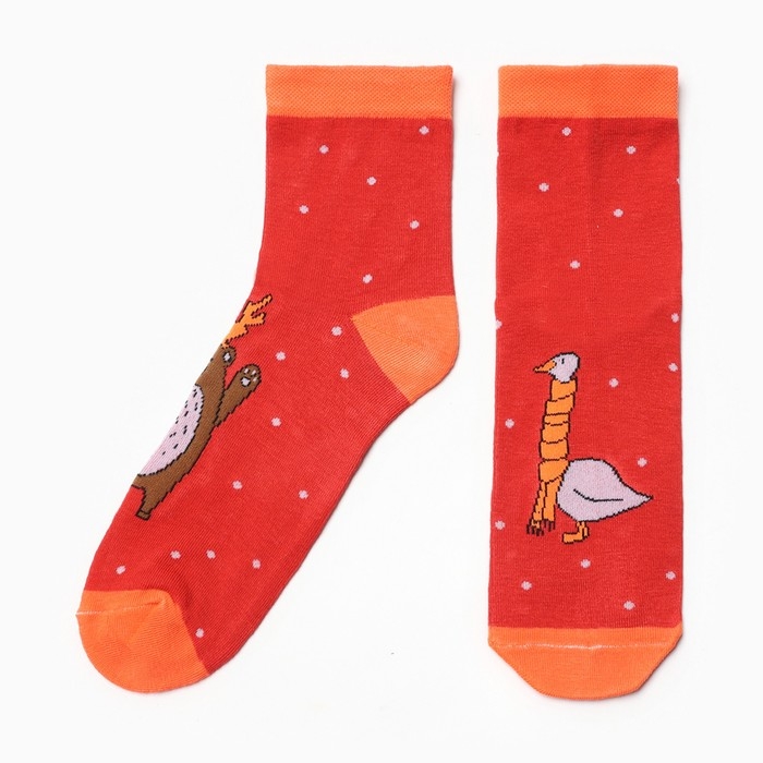 Носки "Мишка и Гусь", цвет красный, размер 23-27 (38-41)