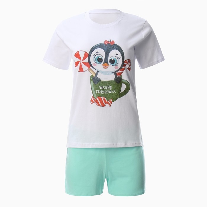 Комплект (футболка,шорты) домашний женский, цвет белый/зелёный, размер 46