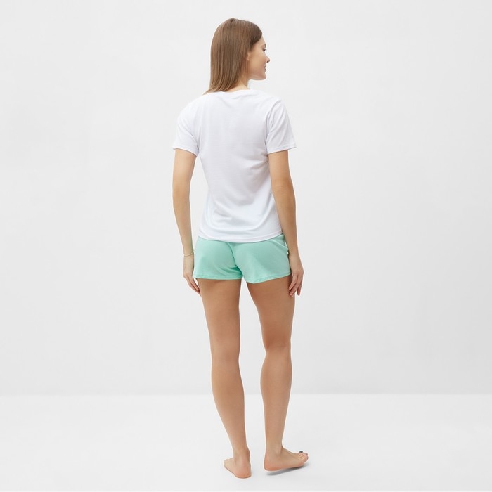 Комплект (футболка,шорты) домашний женский, цвет белый/зелёный, размер 50
