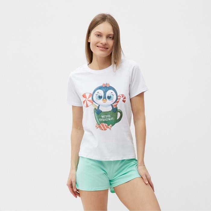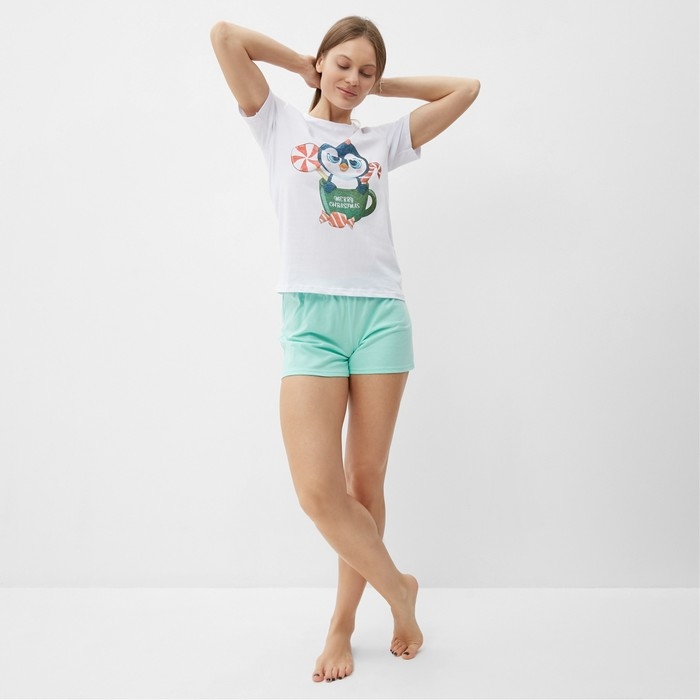 Комплект (футболка,шорты) домашний женский, цвет белый/зелёный, размер 52