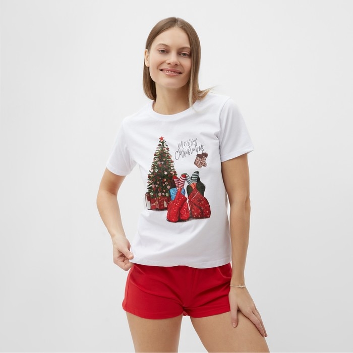 Комплект женский домашний (футболка,шорты), цвет белый/красный, размер 44