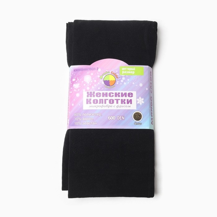 Колготки женские микрофибра с флисом 600 DEN, цвет черный, размер 2