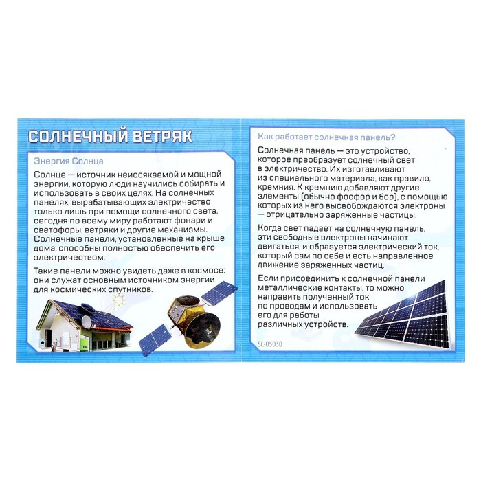 Электронный конструктор из дерева позволит ребёнку собрать рабочую модель ветряка, работающего от энергии солнца! Малыш познакомится с принципами функционирования солнечных панелей и узнает, как лучи света преобразуются в электричество.