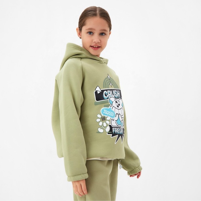 Толстовка (худи) детская MINAKU: CRUSH, цвет оливковый, рост 122 см