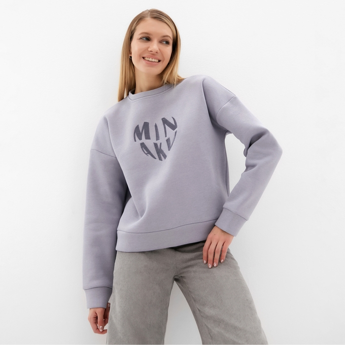 Свитшот женский MINAKU: Velvet Collection цвет светло-серый, размер 42