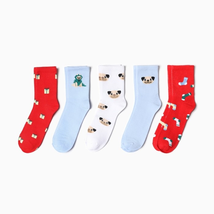 Набор новогодний женских носков KAFTAN "Подарочек для тебя" размер 36-39 (23-25 см), 5 пар