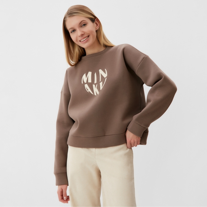 Свитшот женский MINAKU: Velvet Collection цвет коричневый, размер 44