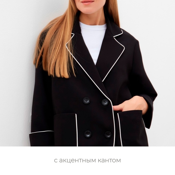 Пиджак женский с кантом MINAKU: Casual Collection цвет черный, р-р 42