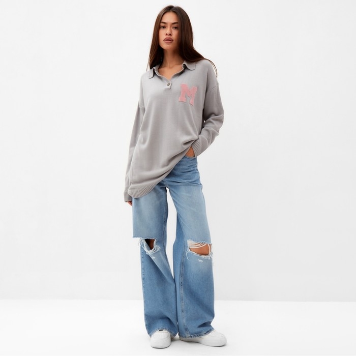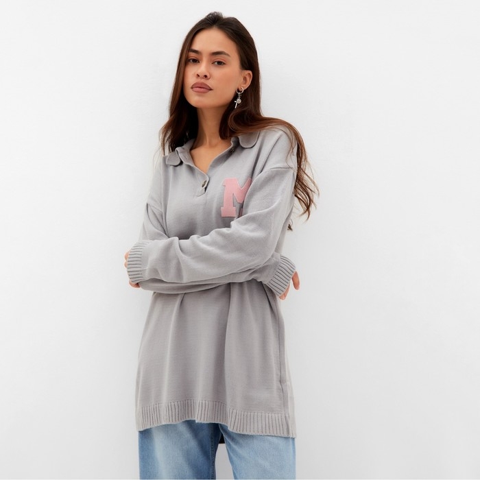 Джемпер женский MIST с воротником поло серый, р. L (48-50)
