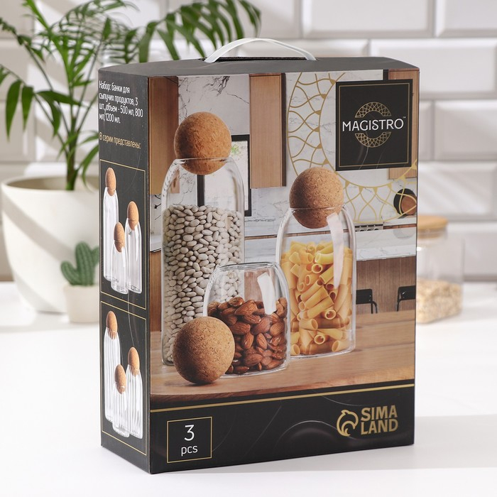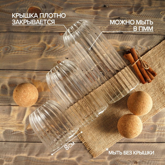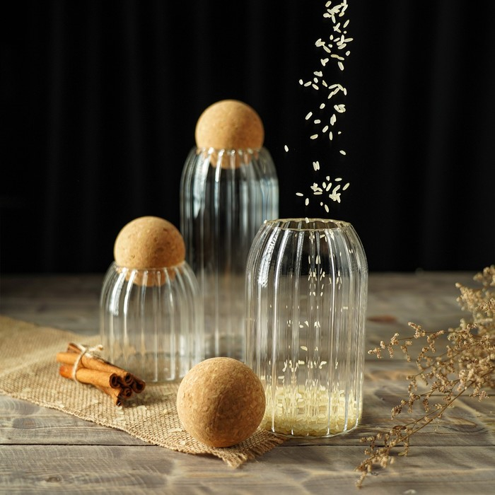 Банки стеклянные для хранения сыпучих продуктов «Эко», 3 предмета: 400/700/1000 мл, с пробковой крышкой