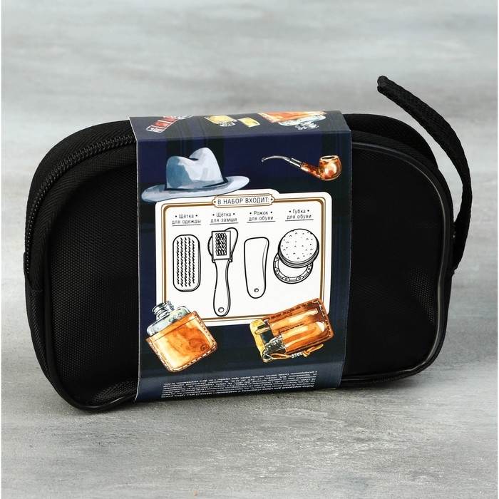 Подарочный набор дорожный для обуви «Настоящему мужчине»: щётка 2 шт, губка, лопатка