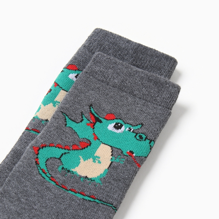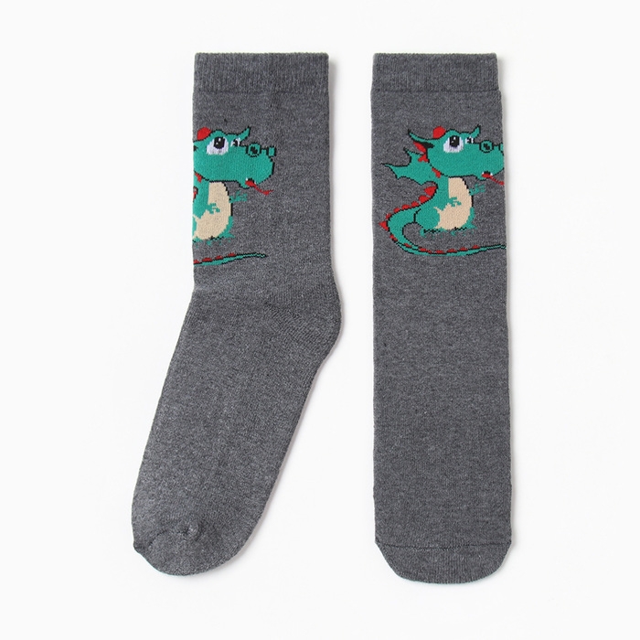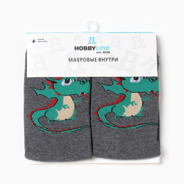 Носки женские "Дракончик" с махрой внутри, цвет серый/клетка, размер 36-40