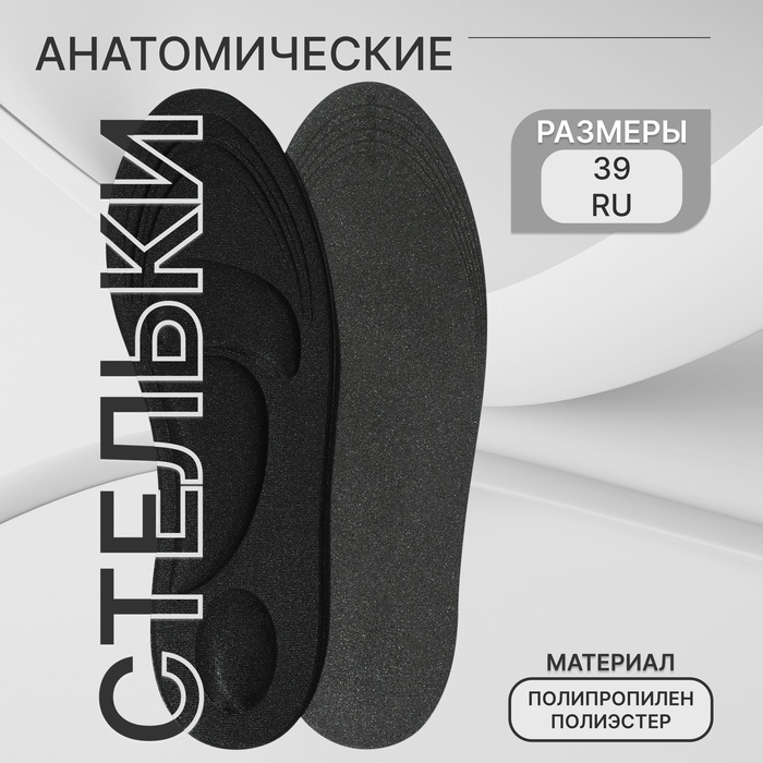 Стельки для обуви, универсальные, амортизирующие, р-р RU до 39 (р-р Пр-ля до 40), 25,5 см, пара, цвет чёрный