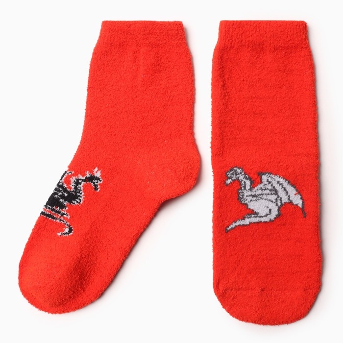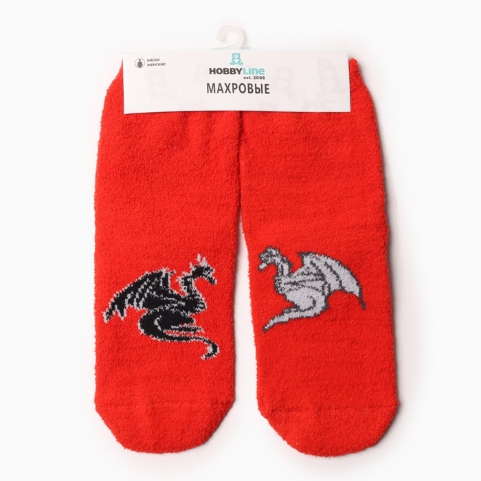 Носки женские махровые «Два дракона Инь и Янь», цвет красный, размер 36-40
