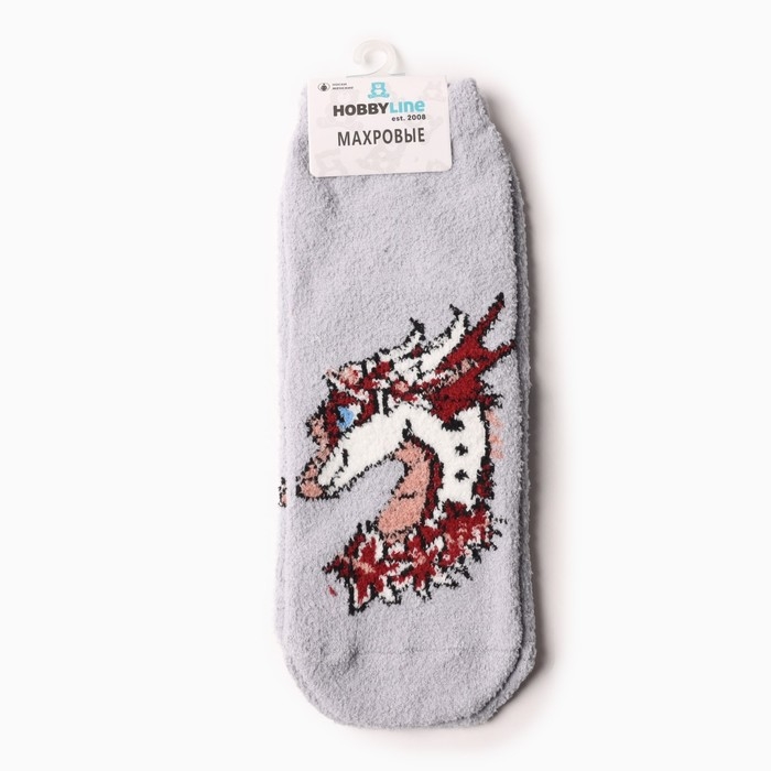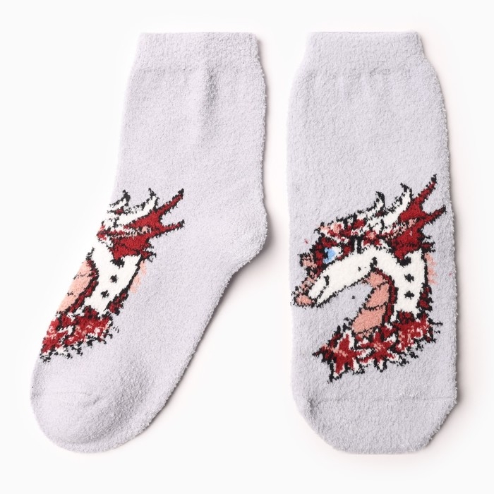 Носки женские махровые «Дракон-леди в цветах», цвет серый, размер 36-40