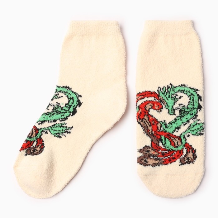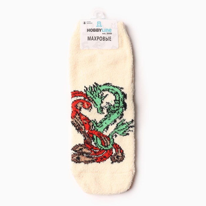 Носки женские махровые «Дракончик и феникс», цвет светло-жёлтый, размер 36-40