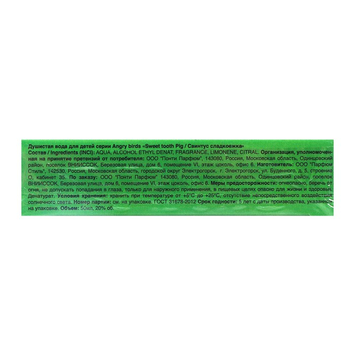 Душистая вода для детей Angry Birds Sweet tooth Pig, 50 мл