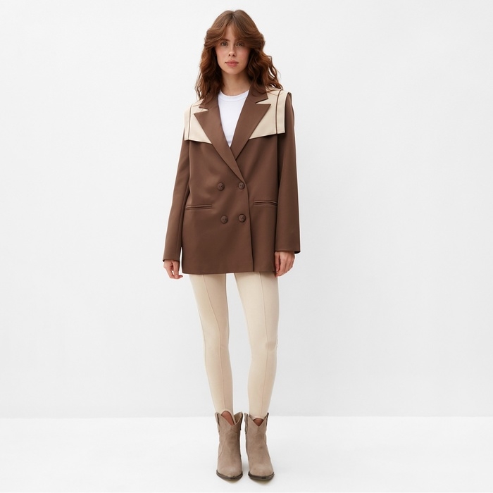 Пиджак женский с накидкой MINAKU: Casual Collection цвет коричневый, р-р 52
