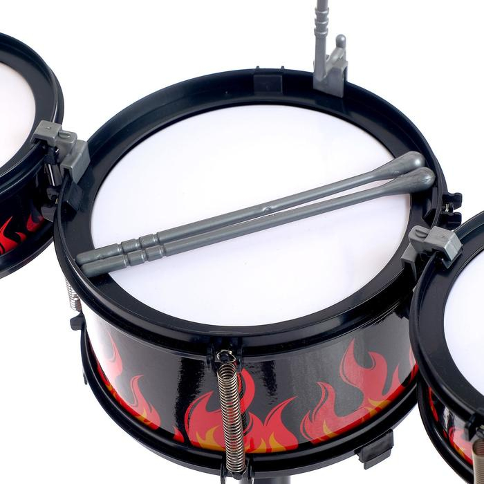 Барабанная установка поможет развить музыкальный слух, чувство ритма и мелкую моторику рук.