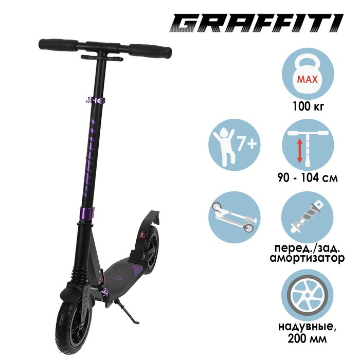Самокат GRAFFITI, колёса световые PU 110/75 мм, ABEC 7