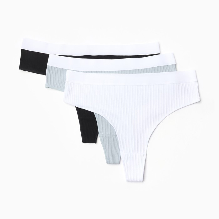 Набор трусов бразилиана MINAKU рубчик размер 40-42 (белый, бежевый, чёрный) 3 шт