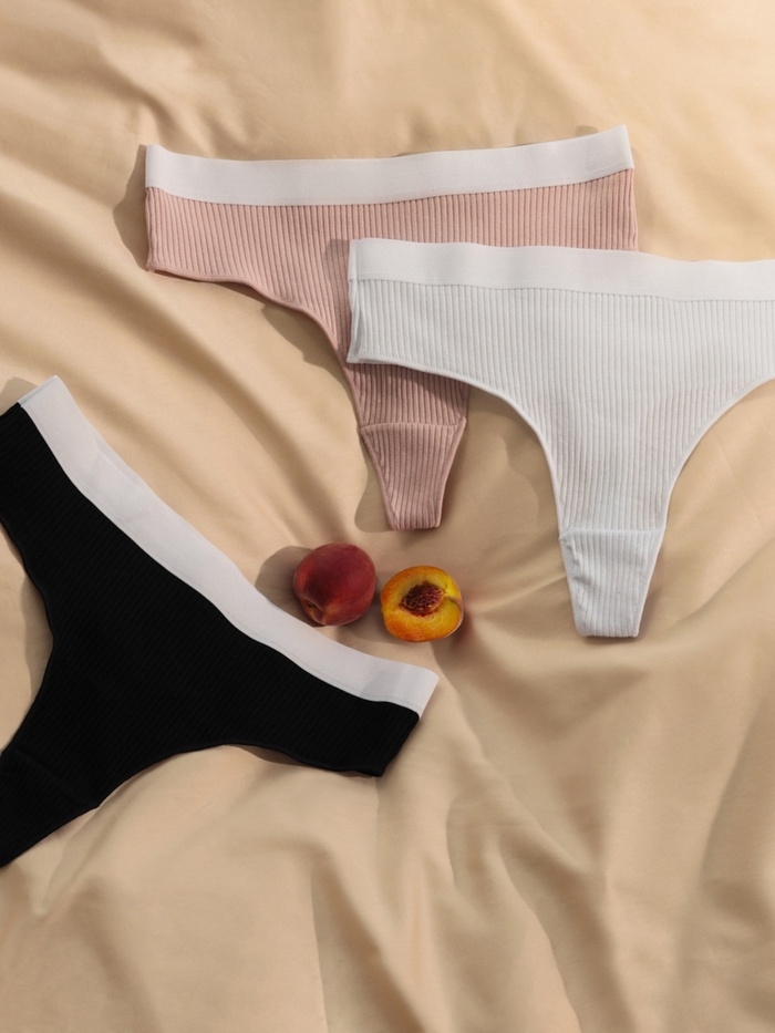 Набор трусов бразилиана MINAKU рубчик размер 48-50 (белый, бежевый, чёрный) 3 шт