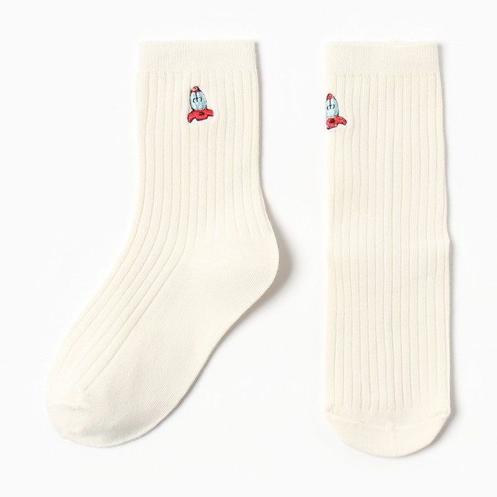 Носки детские MINAKU "Ракета", цвет молочный , размер 18-20 см