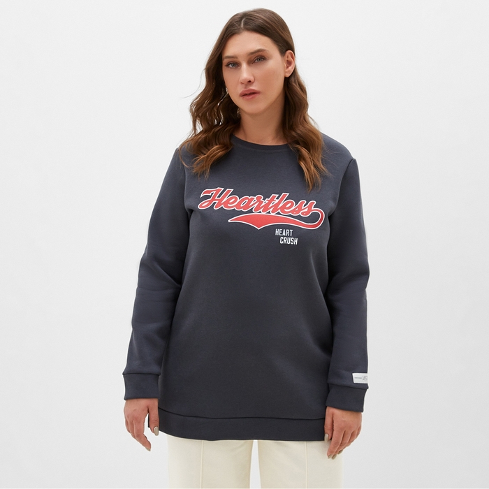 Свитшот удлиненный женский с начёсом MIST Cozy style, графит, размер 52