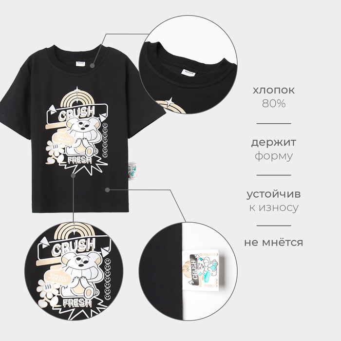 Футболка детская MINAKU, цвет чёрный, рост 104 см