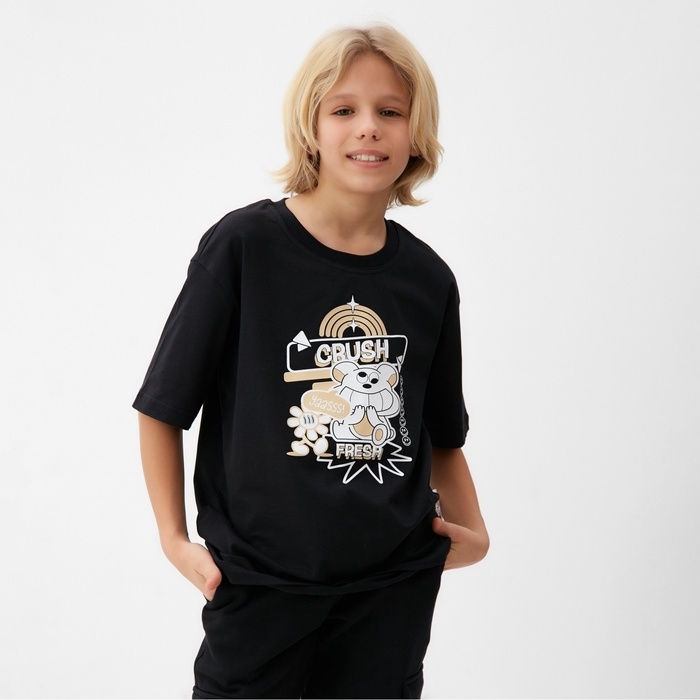 Футболка детская MINAKU, цвет чёрный, рост 134 см