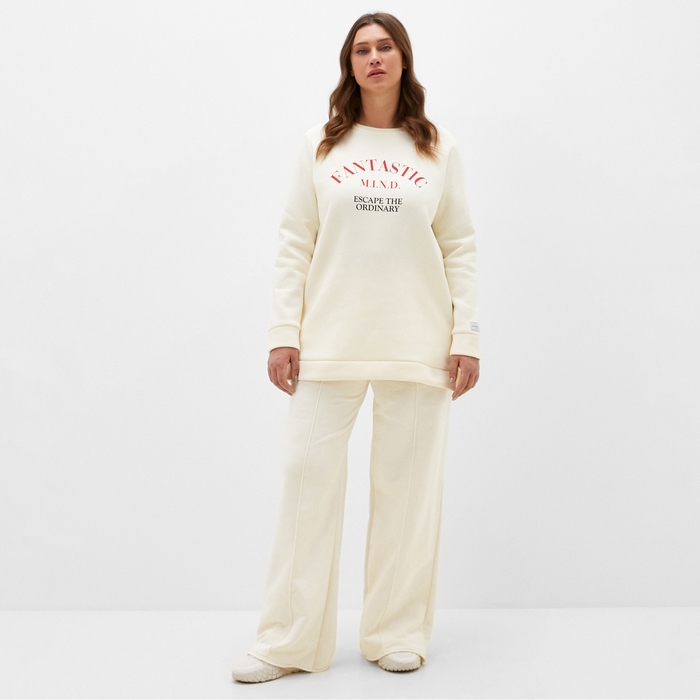 Свитшот удлиненный женский с начёсом MIST Cozy style, молочный, размер 52