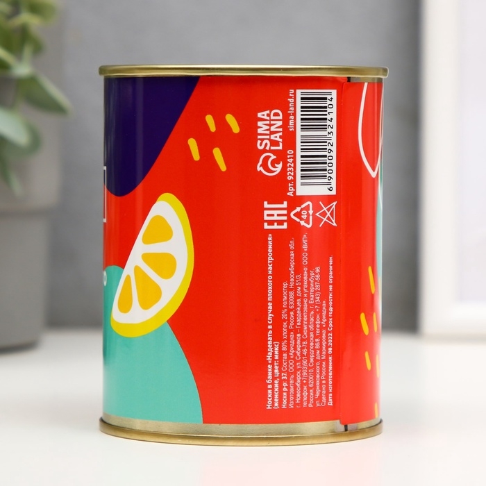 Подарочные носки в банке «Надевать в случае плохого настроения», (внутри носки женские, цвет белый)