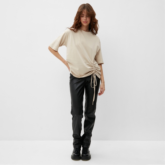 Футболка женская с кулиской MINAKU REGULAR FIT: цвет бежевый, р-р 42